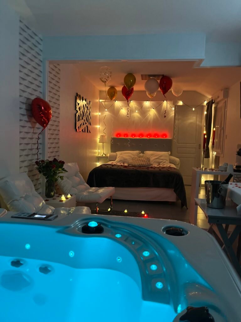 Profitez d’une nuit dans une suite spa avec le petit-déjeuner inclus, ainsi qu’une décoration romantique.